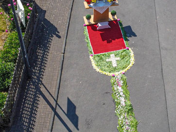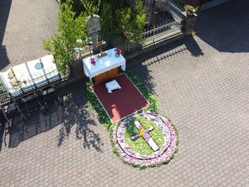 Fronleichnam 2023 in Reulbach war ein Fest der Farben. Mit gutem Wetter als stetigem Begleiter zog die Prozession durch das Dorf, musikalisch begleitet den Wallmusikanten. Herzstück waren die vier liebevoll gestalteten Altäre, die, wie jedes Jahr, mit prachtvollen Blumenteppichen geschmückt waren. Die Blütenpracht in leuchtenden Farben, von fleißigen Händen arrangiert, zog die ganze Gemeinde in ihren Bann.