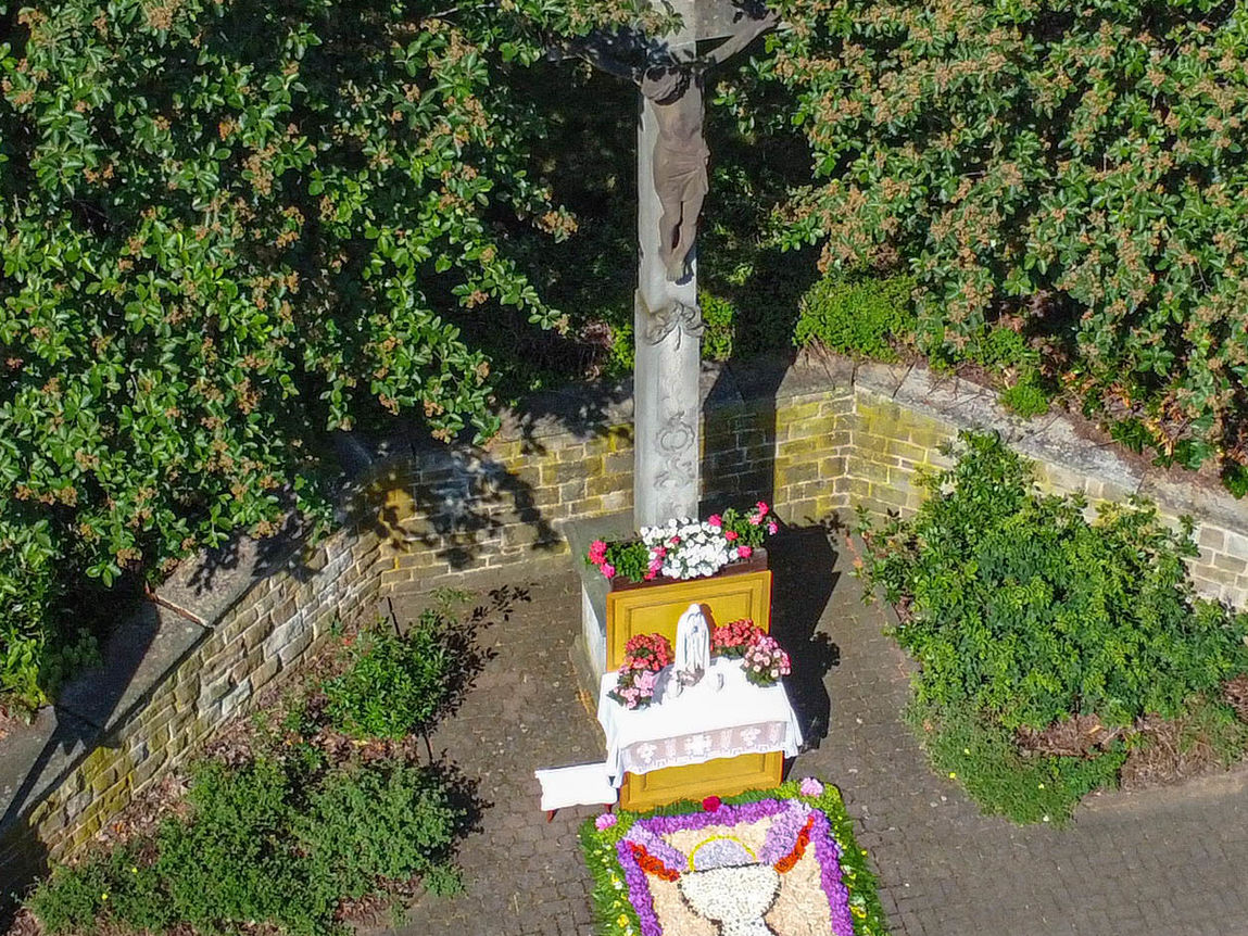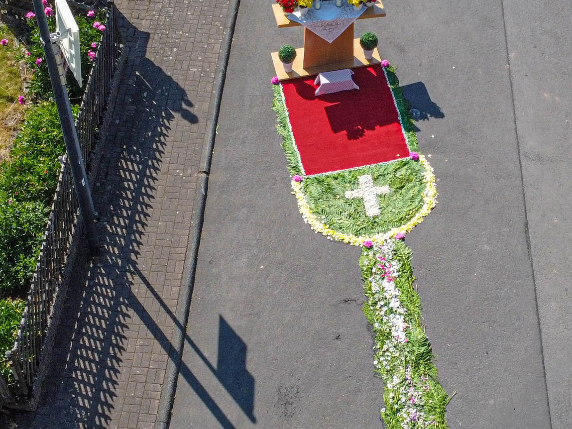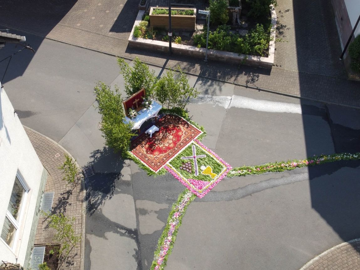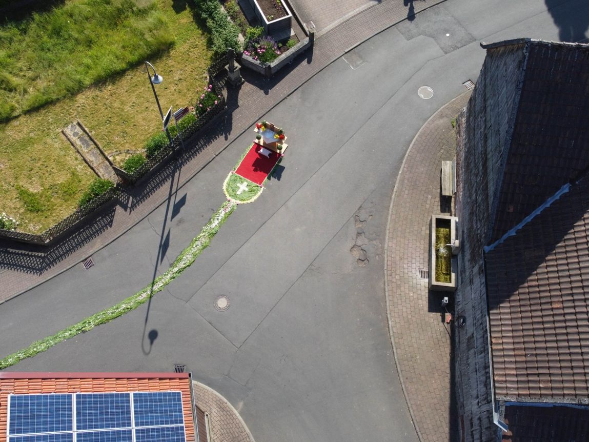 Fronleichnam 2023 in Reulbach war ein Fest der Farben. Mit gutem Wetter als stetigem Begleiter zog die Prozession durch das Dorf, musikalisch begleitet den Wallmusikanten. Herzstück waren die vier liebevoll gestalteten Altäre, die, wie jedes Jahr, mit prachtvollen Blumenteppichen geschmückt waren. Die Blütenpracht in leuchtenden Farben, von fleißigen Händen arrangiert, zog die ganze Gemeinde in ihren Bann.